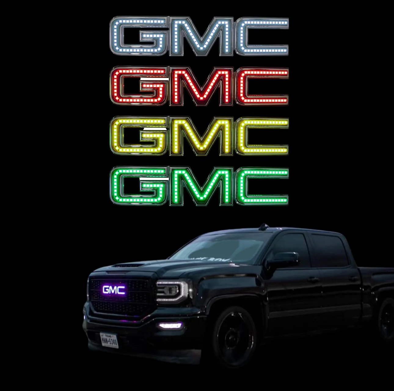 Chasser RGBW Halo Kits Multicolored LED Logo to fit GMC Front Emblem - Illuminated Truck Logos 2007-2018 Models - Replacement to fit GMC Emblems for Trucks - LED Truck Logo Emblems - Made in USA